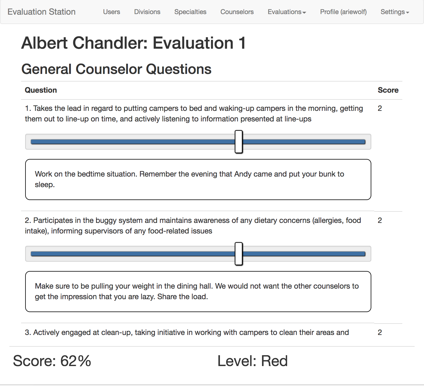 Tyler Hill Camp was looking for a way to turn their once paper-driven counselor evaluation system into something that could be used in tandem with their brand new iPads. With the system we've developed, counselors, evaluators, and approvers can all be added and organized by an admin user. Counselors can be assigned a division, and can be given a designation based on their type (general, specialty, or group leader). Evaluators can be assigned different counselors to evaluate, and access counselor evaluations from previous periods. Approvers can look through the submitted evaluations and finalize their approval. A CSV export can be generated detailing the full-camp results of each evaluation period, and all counselor evaluations are archived at the end of the season.
